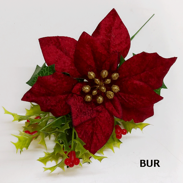 [最短出荷]ポインセチアピック 1本売【クリスマス花材】ポインセチアホーリーミックスピック(全長約14cm 花径5cm)XE-8326
