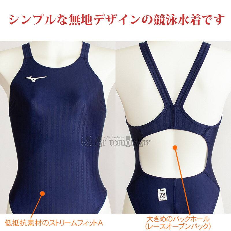 競泳水着 レディース MIZUNO ミズノ 2XLサイズ(XOサイズ) N2MA022214 ネイビー FINA承認 ストリームエース 無地 紺色 ハイカット/2022FW