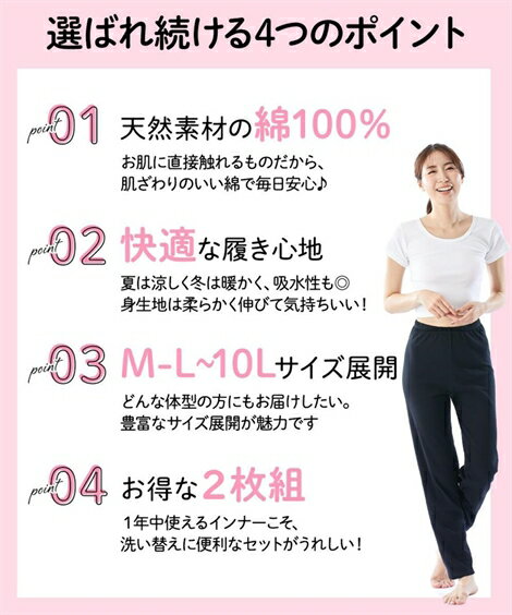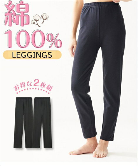 レギンス レディース 綿100% スムース ゆったり 10分丈 2枚組 黒 M〜L ニッセン nissen