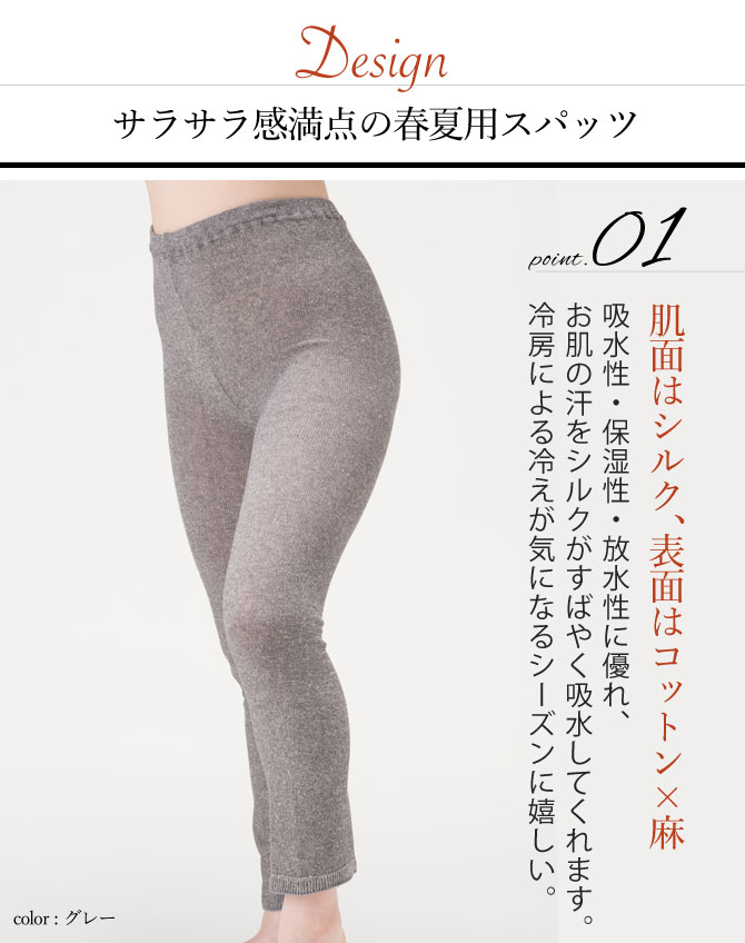 スパッツ レディース シルク 絹 春夏用 ゆったり 絹のサラサラスパッツ レディースファッション メール便対応 おしゃれ
