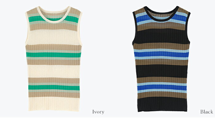 商品詳細 商品説明 ◆POINT・スタイリングに華やかさをプラスするマルチボーダーノースリーブニット。