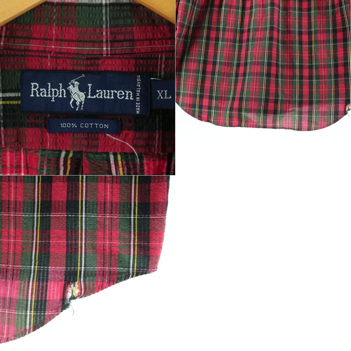 古着 ラルフローレン Ralph Lauren タータンチェック シアサッカー 長袖 ボタンダウンチェックシャツ メンズXL /eaa139710 【210318】【SS2106】【HNY22】